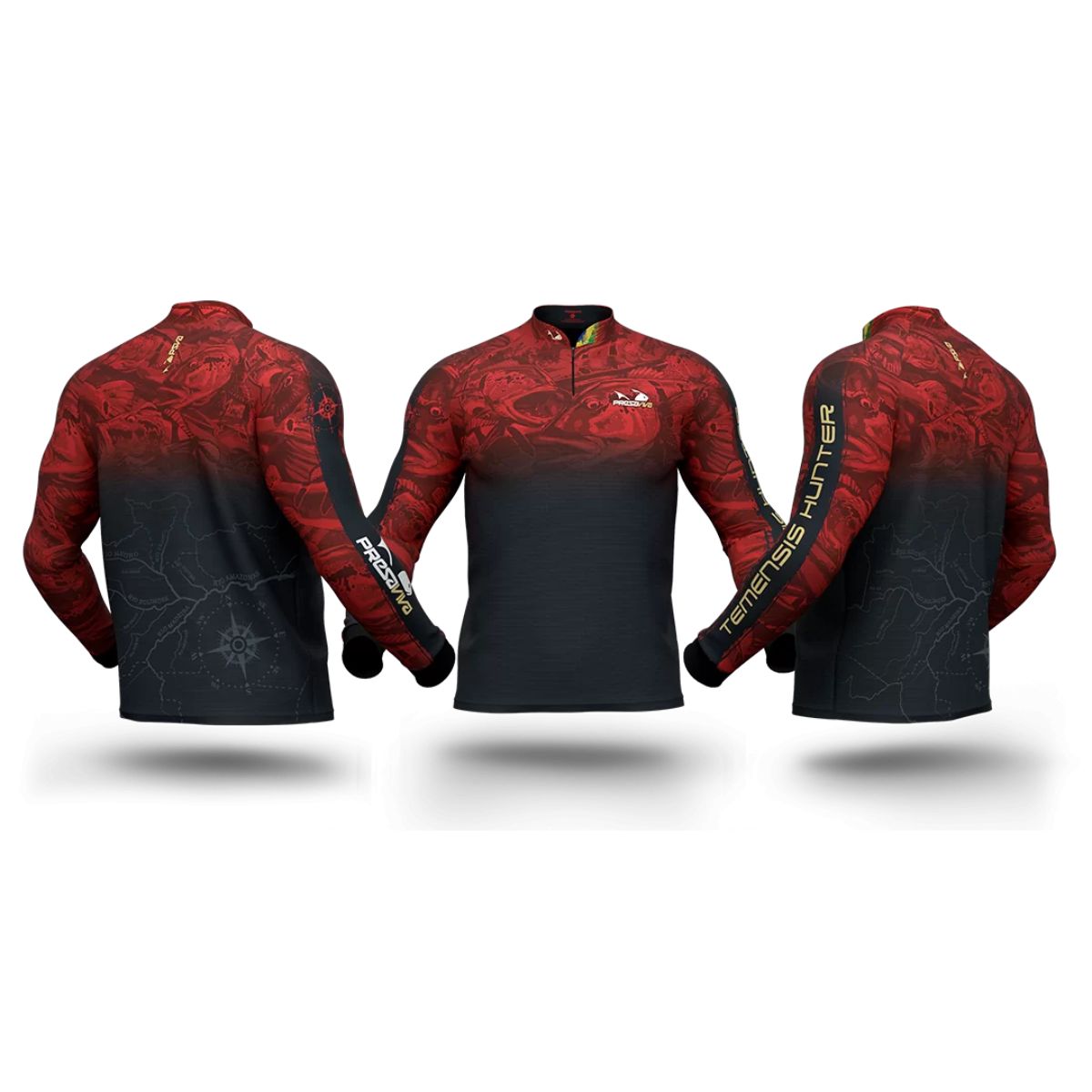 Camisa sublimada Presa Viva Tecnologia Dry, que proporciona máximo conformo térmico durante a atividade, modelo raglã manga longa, fechamento com zíper.